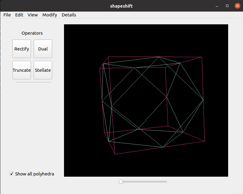 Seed polyhedra are provided as the five Platonic solids. The following operations can be combined in different orders to create new and complex polyhedra: